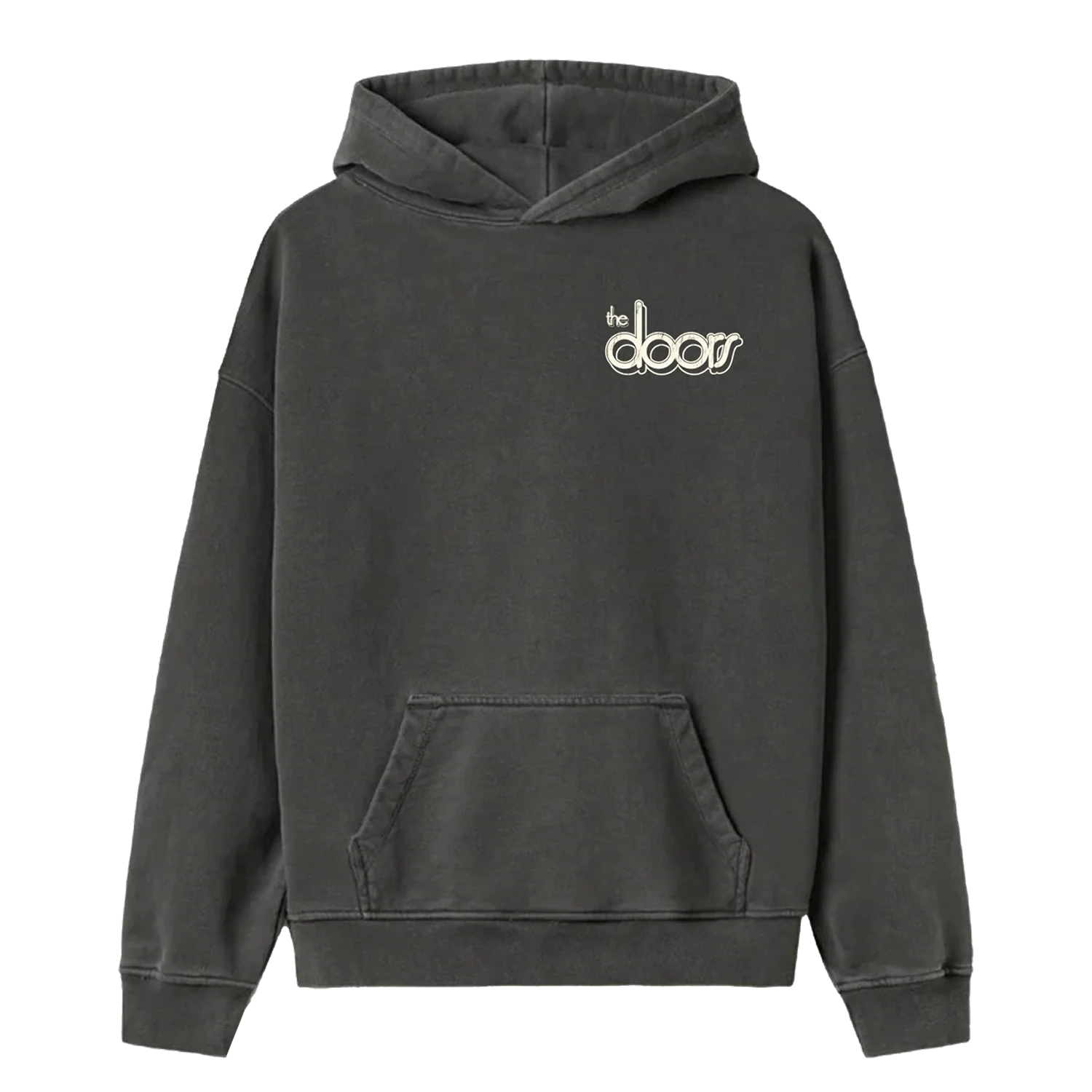This washed black hoodie honors The Doors’ historic Falkoner Centret performance on September 17, 1968, featuring a vintage- inspired Copenhagen waterfront print on the back that blends history, style, and comfort.