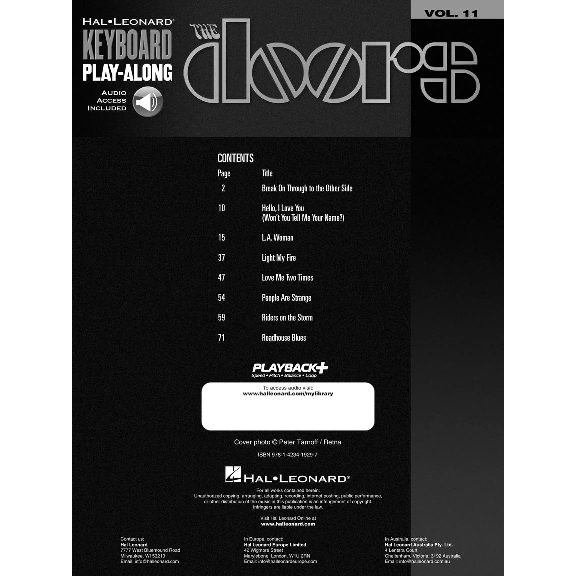 This volume contains 8 songs: Break on Through to the Other Side • Hello, I Love You (Won't You Tell Me Your Name?) • L.A. Woman • Light My Fire • Love Me Two Times • People Are Strange • Riders on the Storm • Roadhouse Blues.